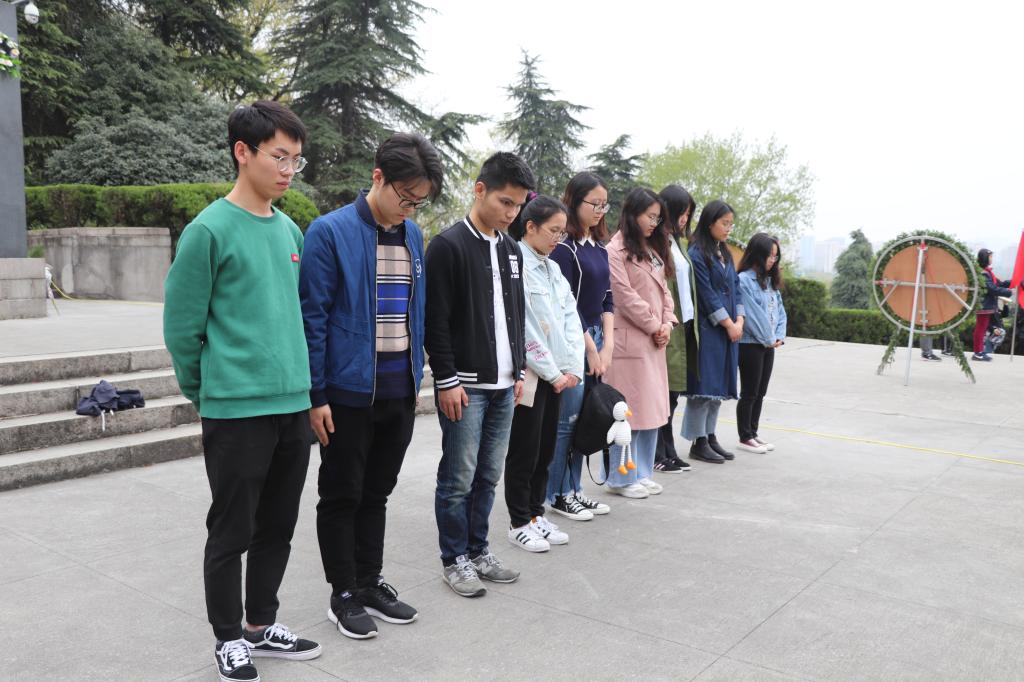 随后,全体同学来到抗日航空烈士纪念碑前默哀,深切缅怀在抗日战争中为了抵御外敌入侵而英勇献身的航空英烈们。