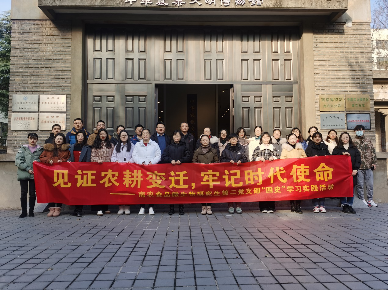 为发扬传承红色精神,做到知史爱党、知史爱国,巩固拓展“不忘初心、牢记使命”主题教育成果,12月17日下午,bat365正版唯一官网食品微生物研究生第二党支部组织党员参观我校中华农业文明博物,农博馆常务副院长、人文社科处副处长、食品微生物第二支部联系机关干部卢勇、食品学院党委副书记邵士昌、辅导员王雪飞参加。