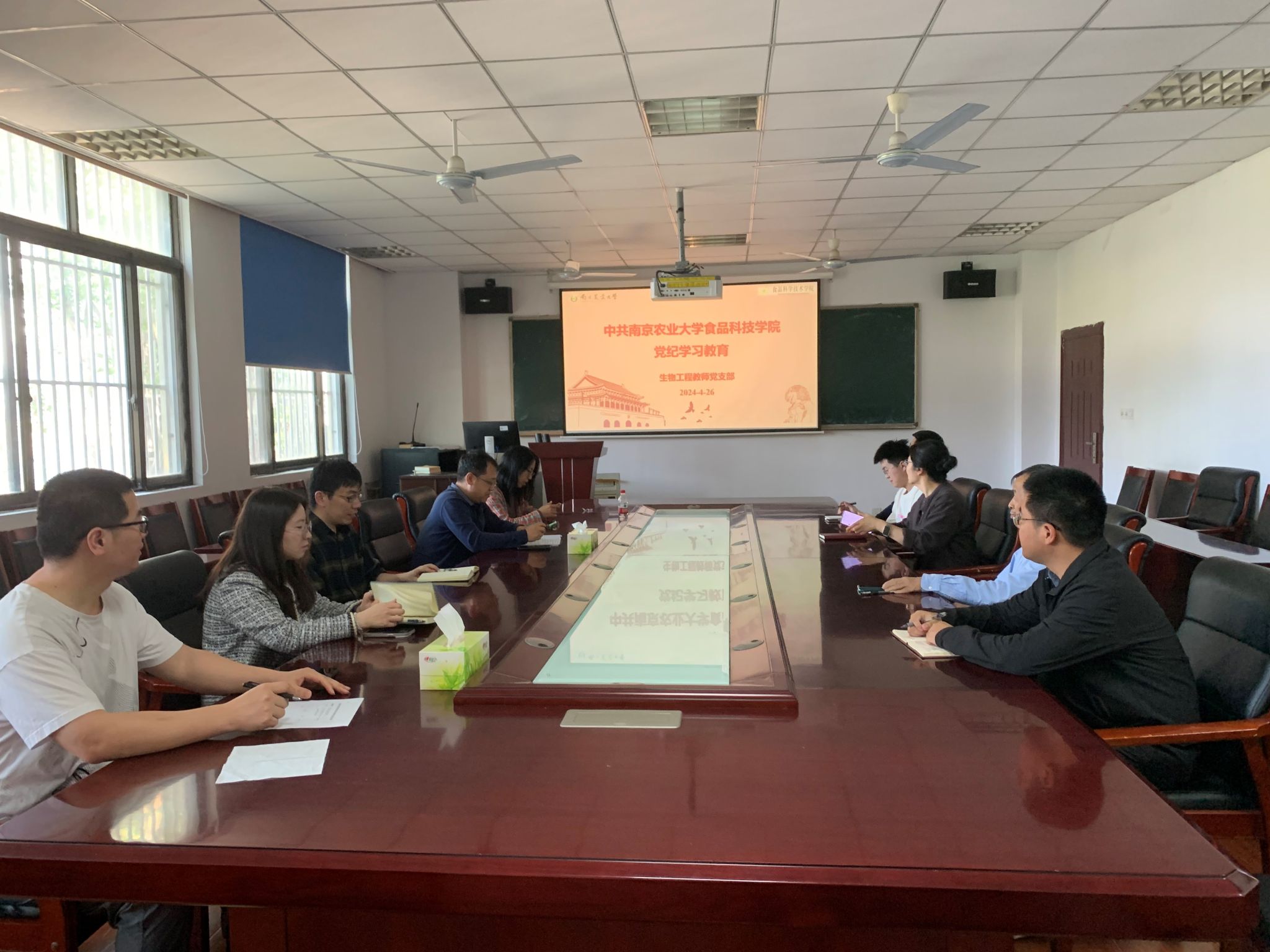第四批全国党建工作样板支部——生物工程教师党支部于4月26日召开党纪学习教育专题支部大会。支部书记冯治洋教授向支部成员传达了学校、学院党纪学习教育部署会议精神,并结合学校、学院工作实际部署支部党纪学习教育工作,带领支部成员共同学习了《中国共产党纪律处分条例》第一章内容。